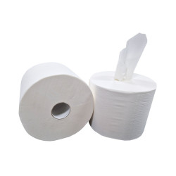 ProductkenmerkenMateriaal: 100% cellulose.Formaat: 24 cm breed, 340 meter lang.Centerfeed: Gelijmde rol, geschikt voor dispensers met binnenkern.Sterk & absorber..